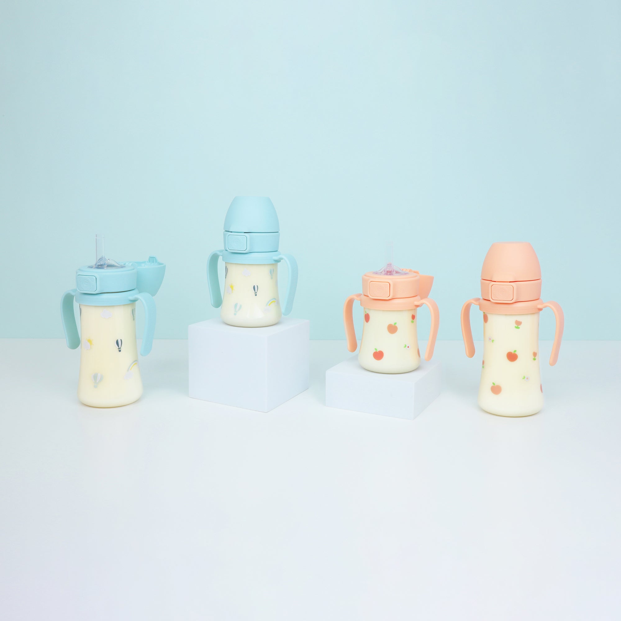 1× 300mL PPSU Straw Cup (Choose: Rose Coral or Cream Blue)